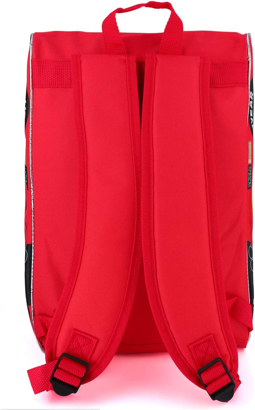 Disney Pixar cars boys backpack features main compartment and a front zip compartment that is perfect for smaller supplies. Includes a padded rear surface and straps for added comfort. Two side mash pocket, haul-or-hook loops for easy carry and storage. Color: Red and yellow. Size: 16 Inch.